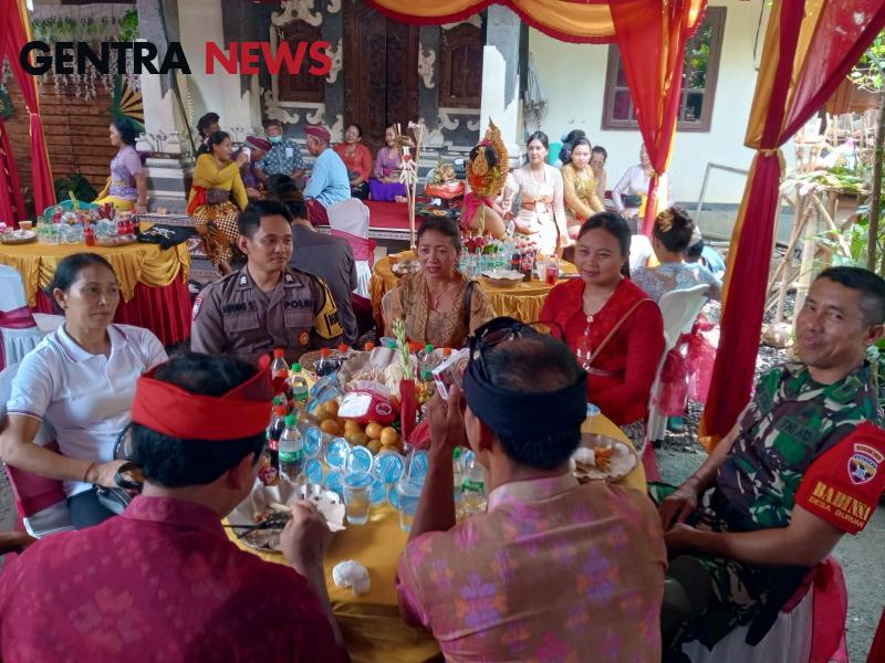 Gentra News Bali – Tabanan – Babinsa Desa Buruan Koramil 1619-08/Penebel Peltu I Made Setiasa bersama Bhabinkamtibmas hadiri acara resepsi pernikahan warga dalam Program Semara Ratih di Banjar Buruan Tengah, Desa Buruan, Kec. Penebel, Kamis (28/11/2024)