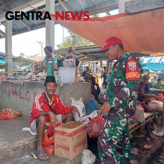 Gentra News NTT-Sertu M Jaini, Babinsa Koramil 04/Tabundung Kodim 1601/Sumba Timur, selalu meluangkan waktu guna membangun komunikasi yang baik bersama masyarakat di wilayah binaannya. Salah satunya dengan menyambangi pasar tradisional di Desa Billa,Kecamatan Tabundung, Kabupaten Sumba Timur, Sabtu (03/08/2024).