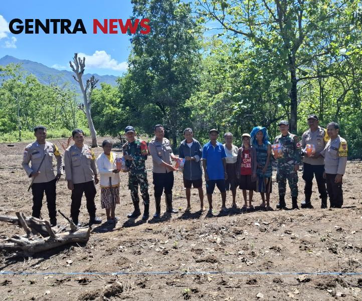 Gentra News NTT – Belu – Satgas Yonif 741/GN Pos Asulait bersama Polsek Tasifeto Timur menggelar giat pemberian dan penanaman bibit jagung untuk ketahanan pangan dan meningkatkan produktivitas pertanian di Dusun Baulenu, Desa Manleten, Kec. Tasifeto Timur, Kab. Belu, NTT. Kamis (21/11/2024)