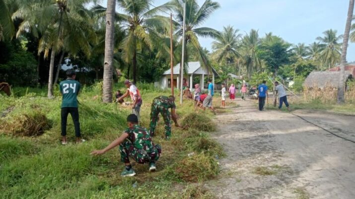 Gentra.co.id NTT – Lembata – Babinsa Koramil 1624-07/Nagawutung, DPP Batuud 1624-07/Nagawutung Serma marselinus p.k Tuvan, Bersama Masyarakat Melaksanakan karya Bakti Pembersihan Area seputaran Masjid Besar At Taqwa Wuakerong, Kecamatan Nagawutung, Kabupaten Lembata, Jumat (28/03/2025).