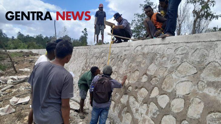 Gentra News NTT – KODIM 1605/BELU, Menjelang kunjungan tim pengawas dan evaluasi (Wasev) TMMD 121, Satgas TMMD 121 tahun 2024 Kodim 1605/Belu bersama Tim Bina Marga PU-PR Kabupaten Malaka melakukan pengukuran volume pengerjaan pembangunan tembok penahan jalan baru UPTD Desa Tniumanu, Kecamatan Laen Manen, Kabupaten Malaka NTT, Kamis (8/8/2024).