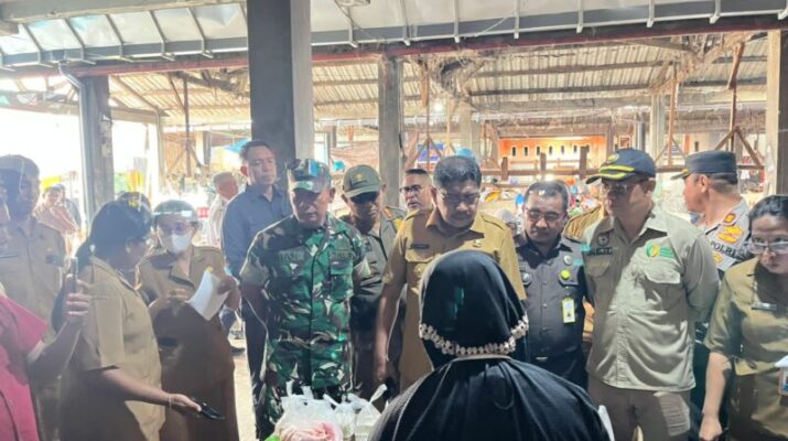 NTT – Sumba Timur. Kasdim 1601/Sumba Timur Mayor Inf Sambudi bersama Forum Koordinasi Pimpinan Daerah (Forkopimda) Kabupaten Sumba Timur melaksanakan inspeksi mendadak (sidak) di Pasar Inpres Matawai, Kelurahan Matawai, Kecamatan Kota Waingapu, Kabupaten Sumba Timur, Selasa (23/12/2025).
