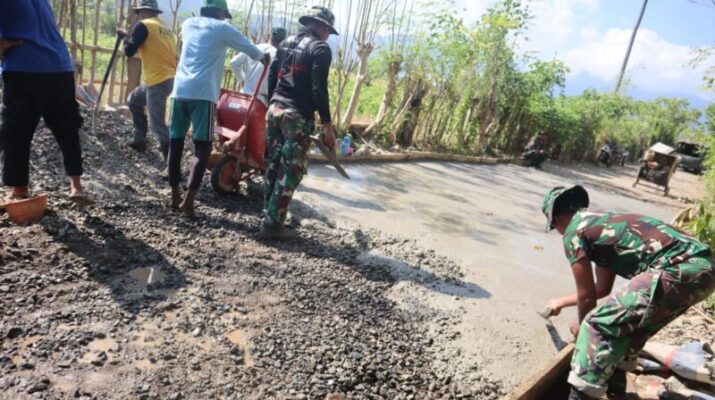 Satgas TMMD bersama masyarakat setempat tampak terus bekerja keras mempercepat penyelesaian pekerjaan. Dengan cuaca yang mendukung dan dukungan penuh dari warga, proses pengecoran ditargetkan bisa rampung pada hari ini.