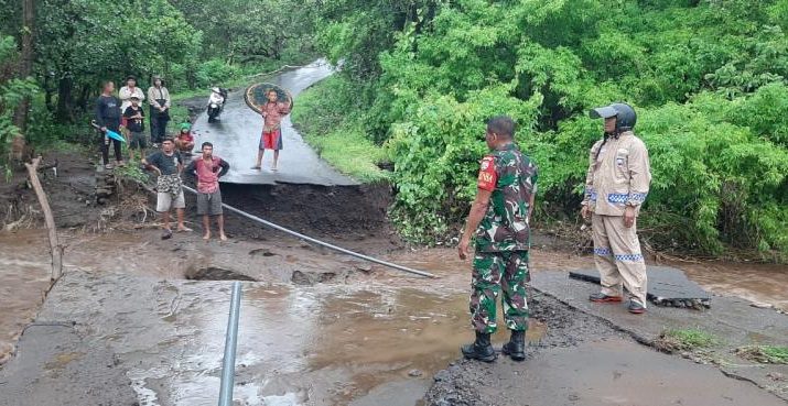 Saat ini akses jalan terputus total karena jembatan hanyut terbawa banjir, kami bersama warga berupaya mengamankan lokasi untuk mencegah hal-hal yang tidak diinginkan, ungkap Babinsa.