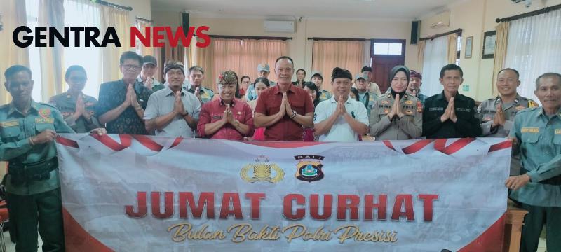 Kasubdit 1 Ditreskrimum Polda Bali dalam sambutannya menerangkan bahwa kegiatanJumat Curhat ini adalah program yang didorong oleh mabes polri, guna menampung keluhan atau aspirasi masyarakat adapun kunci Jumat Curhat adalah membangun informasi dua arah dan bisa terbangun kolaborasi untuk menjaga kamtibmas yg kondusif.