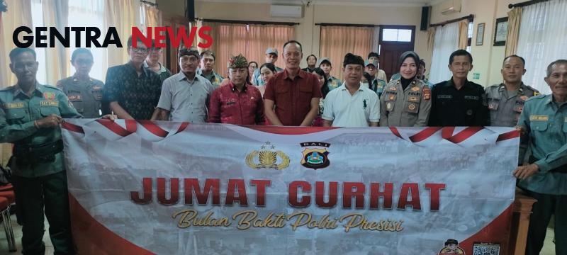 Kasubdit 1 Ditreskrimum Polda Bali dalam sambutannya menerangkan bahwa kegiatanJumat Curhat ini adalah program yang didorong oleh mabes polri, guna menampung keluhan atau aspirasi masyarakat adapun kunci Jumat Curhat adalah membangun informasi dua arah dan bisa terbangun kolaborasi untuk menjaga kamtibmas yg kondusif.