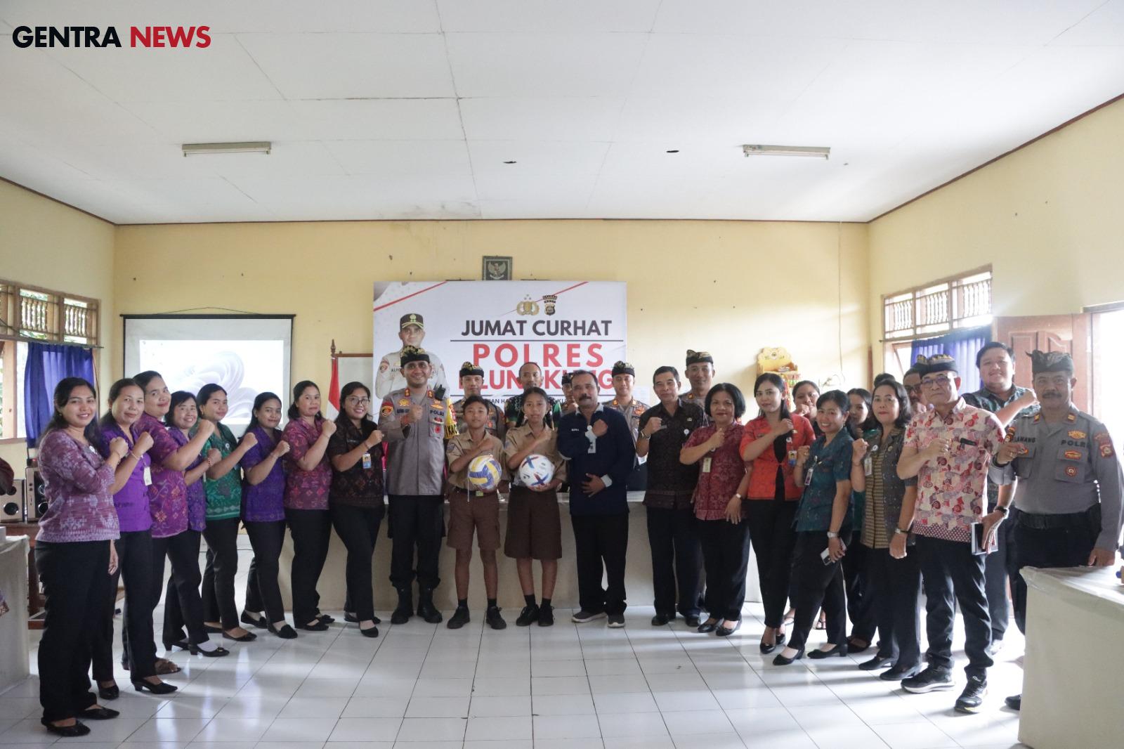 Kegiatan Jumat Curhat kali ini dilaksanakan di SMP N 1 Banjrangkan, Kecamatan Banjarangkan, Kabupaten Klungkung yang dihadiri oleh Kepala sekolah SMP N 1, para guru SMP N 1 Banjarangkan, perwakilan para orang tua siswa, serta perwakilan dari siswa siswi SMP N 1 Banjarangkan.