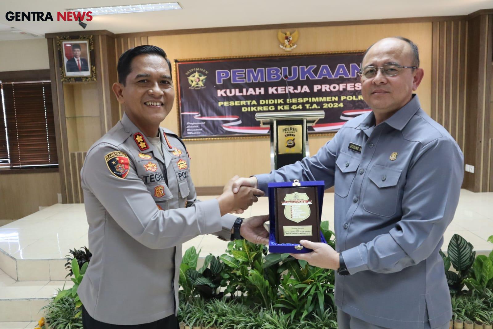 Gentra News Bali – Mangupura, Kepala Kepolisian Resor Badung AKBP Teguh Priyo Wasono, SIK. menerima tim Kuliah Kerja Profesi Sespimmen Lemdiklat Polri Dikreg 64 T.A. 2024 di Aula Polres Badung Jl. Kebo Iwa No. 1 Mengwitani Kecamatan Mengwi Kabupaten Badung, Bali. Selasa 9 Juli 2024 pagi.
