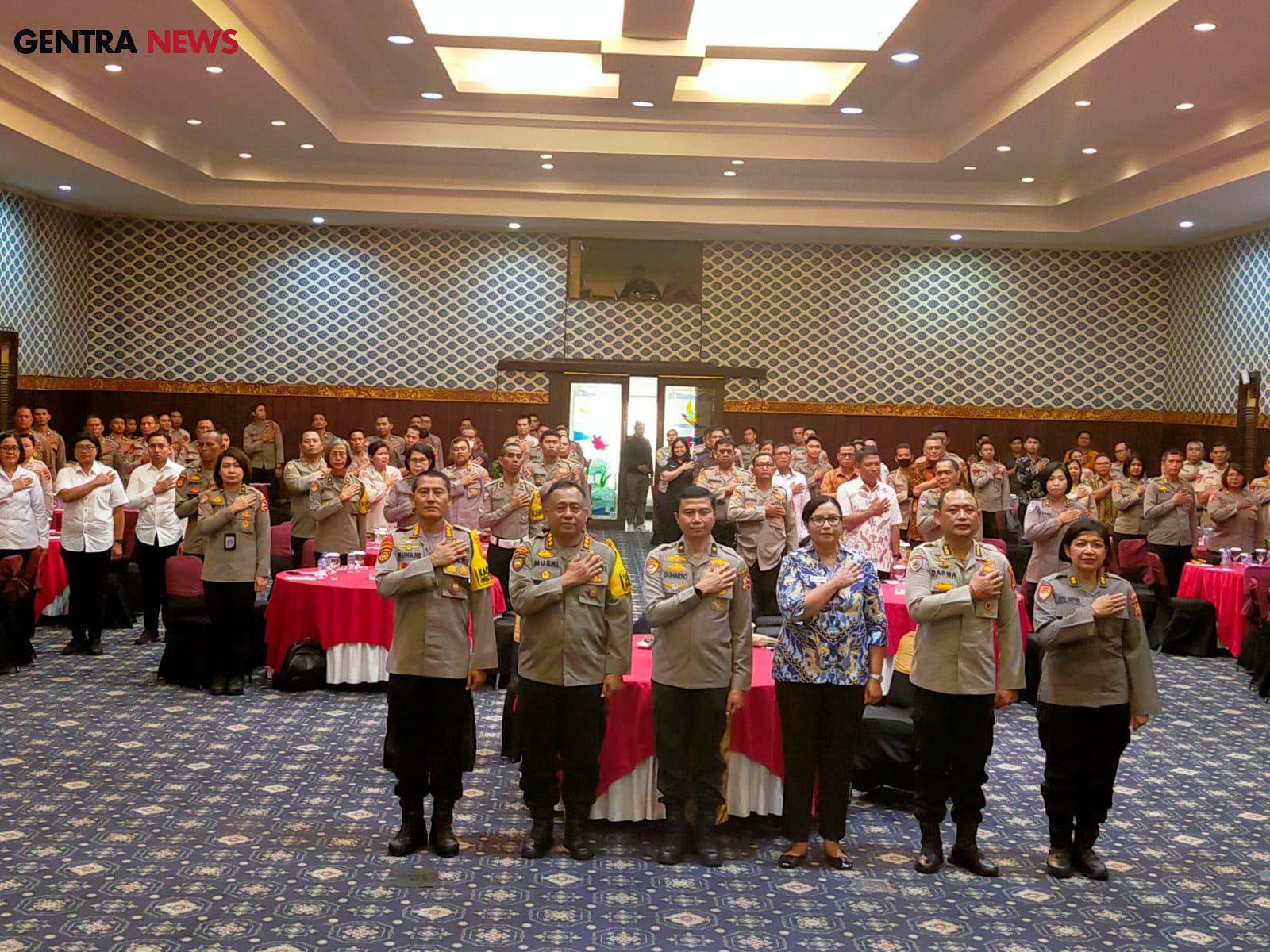 Pemberi Nateri/Narasumber Karo RBP Srena Polri Brigjen Pol Drs. MAS GUNARSO, S.H., M.Si, Kepala Perwakilan Ombudsman RI perwakilan Provinsi Bali Ibu NI NYOMAN SRI WIDHIYANTI, Kabag RBP Rorena Polda Bali AKBP KOMANG AYU ASTINI, S.E. M.M.
