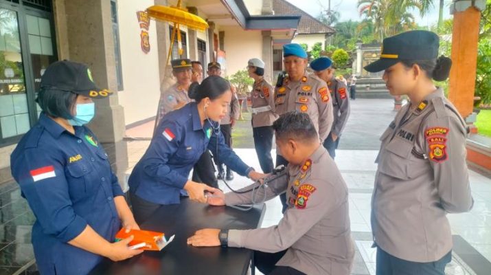 Bangli – Kapolres Bangli, AKBP I Gede Putra, S.H., S.I.K., M.H., menegaskan pentingnya menjaga kesehatan bagi seluruh personel Polres Bangli dalam menunjang pelaksanaan tugas. Hal tersebut disampaikan Kapolres saat menghadiri kegiatan pemeriksaan kesehatan rutin yang dilaksanakan oleh Seksi Kedokteran dan Kesehatan (Sidokes) Polres Bangli setelah apel pagi Senin (20/1/2024).