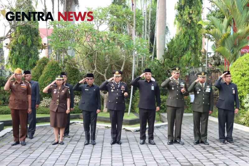 Upacara turut dihadiri oleh Forkopimda Kabupaten Gianyar serta dipimpin oleh Pj. Bupati Gianyar I Dewa Tagel Wirasa, S.E, Ak, M.Si.