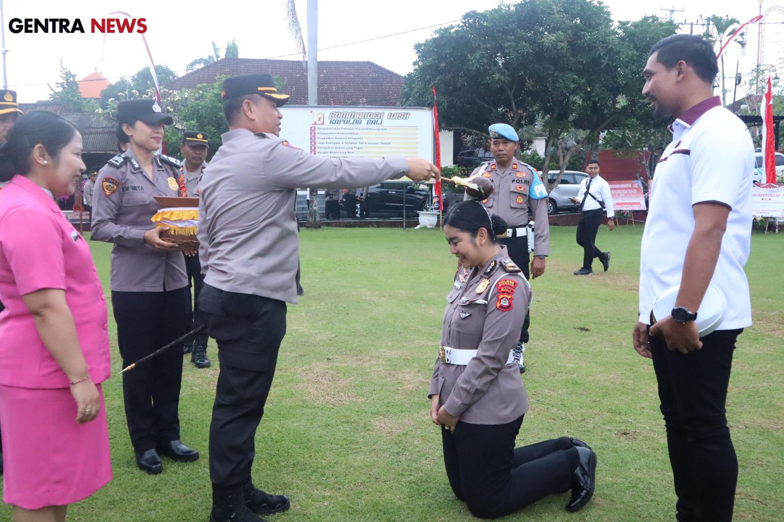 “Hari ini personil yang mendapat kenaikan pangkat sebanyak 32 orang yang terdiri dari 2 perwira dan 30 Bintara,” Ujar Kapolres Gianyar.
