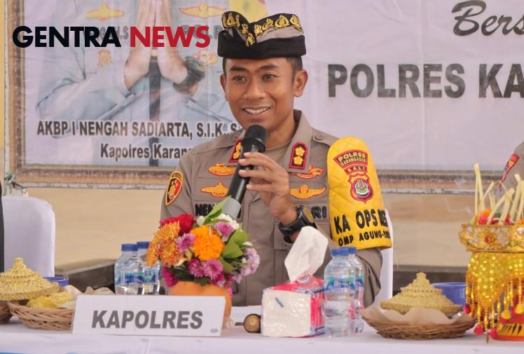 Dalam sambutannya, Kapolres Karangasem menekankan bahwa “Jumat Curhat” merupakan adopsi dari kearifan lokal Bali “Mesikakrama”, yang bertujuan membangun kemitraan antara Polri dengan masyarakat dan pemangku kepentingan terkait. AKBP I Nengah Sadiarta menyoroti beberapa permasalahan di wilayah Karangasem, mulai dari kasus bunuh diri yang tertinggi di Bali, ancaman peredaran narkoba, hingga tingginya angka kecelakaan lalu lintas.
