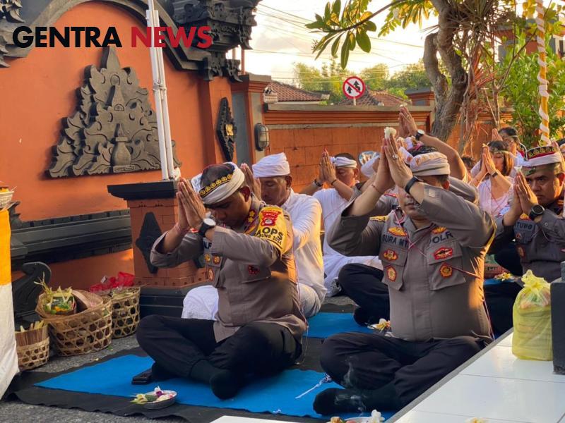 Gentra News Bali – Kapolres Klungkung AKBP Alfons W.P Letsoin,S.I.K., didampingi Wakapolres Klungkung Kompol I Komang Sura Maryantika bersama PJU Polres Klungkung melaksanakan kegiatan persembahyangan bersama dalam rangkaian kegiatan Upacara Pujawali Pura Rogo Manik Padmasana Polsek Dawan yang bertepatan dengan Rahina Purnama Kapat.