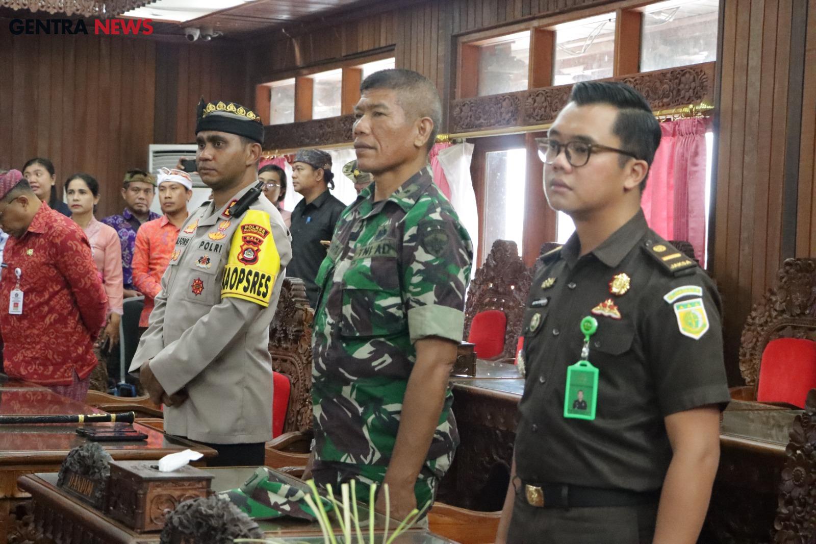 Gentra News Bali – Kapolres Klungkung AKBP Alfons W P Letsoin mengikuti rapat paripurna DPRD Kabupaten Klungkung Pembahasan Penandatanganan Nota Kesepakatan bersama KUA dan PPAS Induk APBD T.A 2025 dan Perubahan APBD Tahun Anggaran 2024 di ruang sidang Sabha Nawa Natya Kantor DPRD Kabupaten Klungkung, Semarapura Kangin, Klungkung (8/8/2024).