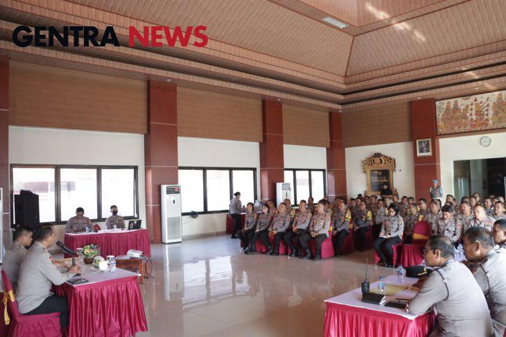 Gentra News Kapolres Klungkung AKBP Alfons W.P. Letsoin didampingi Wakapolres Klungkung I Komang Sura Maryantika memimpin jalanya Analisa dan Evaluasi (Anev) Bhabinkamtibmas Polres Klungkung di Aula Jalaga Dharma Pandhapa, rabu (31/7/2024).