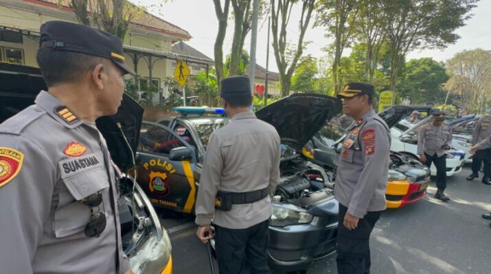 Polda Bali – Polres Tabanan – Humas Tabanan. Dalam rangka mengoptimalkan efektivitas patroli dan pelayanan masyarakat, Kapolres Tabanan AKBP Chandra C. Kesuma, S.I.K., M.H., melaksanakan pengecekan kendaraan patroli yang telah dilengkapi GPS dan CCTV dashboard, pada Senin, 26 Mei 2025, pukul 09.45 Wita. Kegiatan berlangsung di Jalan Pahlawan depan Mako Polres Tabanan, dan diikuti oleh Waka Polres, Kabag Ops, Kapolsek jajaran, serta personel pengawak kendaraan.