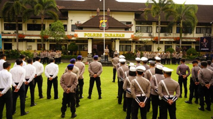 Kegiatan apel berlangsung dalam suasana tertib dan kondusif, mencerminkan semangat profesionalisme dan soliditas di lingkungan Polres Tabanan.