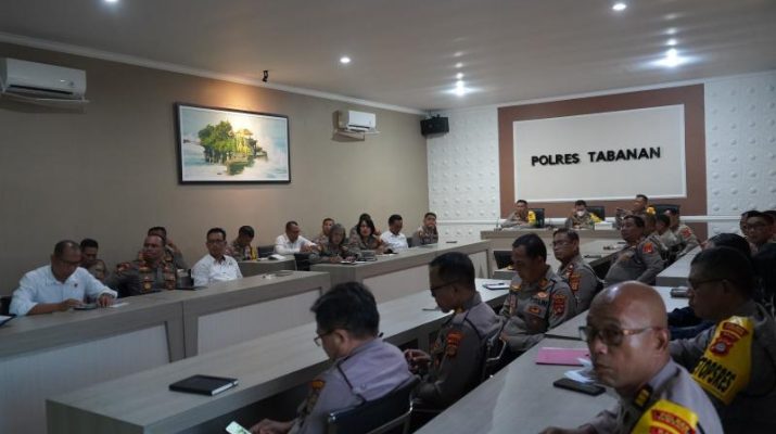 Gentra.co.id Bali – Polda Bali – Polres Tabanan – Humas Tabanan. Dalam rangka memastikan kesiapan pelaksanaan Operasi Ketupat 2025, Kapolri Jenderal Polisi Drs. Listyo Sigit Prabowo, M.Si., memimpin Rapat Koordinasi (Rakor) Lintas Sektoral Tingkat Menteri melalui sarana Zoom pada Senin (10/3/2025) Dimulai pukul 11.00 s/ d 14.30 Wita Rakor ini diikuti oleh berbagai kementerian dan lembaga terkait, termasuk TNI, Kementerian Perhubungan, Kementerian Perdagangan, serta Badan Nasional Penanggulangan Bencana (BNPB). Di Polres Tabanan, kegiatan ini dihadiri oleh Kapolres Tabanan, Waka Polres, Pejabat Utama (PJU), serta para Kapolsek jajaran Polres Tabanan.