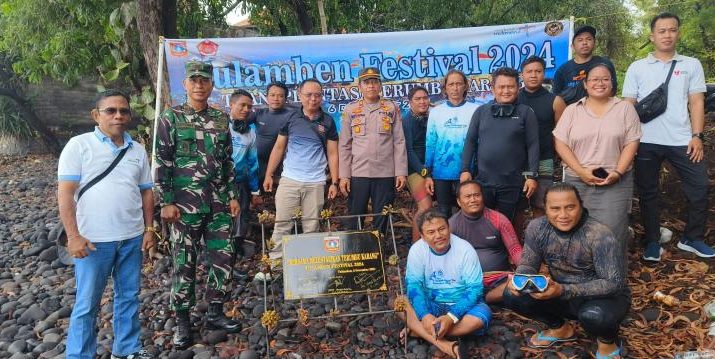 Gentra News Bali – Polda Bali – Polres Karangasem – Polsek Kubu, Kapolsek Kubu, AKP I Gusti Agung Bagus Suteja, S.IP., M.H., bersama Danramil Kubu dan Camat Kubu menghadiri kegiatan transplantasi terumbu karang dalam rangka Tulamben Festival 2024.