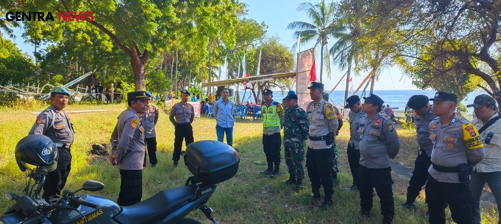 Gentra News Bali-Polda Bali – Polres Karangasem – Polsek Kubu, Kapolsek Kubu Polres Karangasem AKP. I Gusti Agung Bagus Suteja, S. IP. MH selaku Penanggung Jawab Keamanan, Pimpin apel kesiapan, dalam rangka pengamanan rangkaian Jukung Race dalam Rangka meriahkan HUT Kemerdekaan RI ke 79 bertempat di Pantai Batubelah Ds. Tulamben Kubu Karangasem, Rabu (17/7) pkl. 09.00 Wita