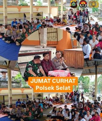 Pada hari Jumat tanggal 27 Desember 2024 sekitar Pukul 09:00 Wita Kapolsek Selat AKP I DEWA GEDE ARIANA, S.H. di dampingi Waka Polsek Selat melaksanakan giat sambang sekaligus serap keluhan Warga / Tokoh Masyarakat di Desa Duda Kecamatan Selat, yang disinkronkan dengan kegiatan Kepolisian dengan tema “Jumat Curhat”.