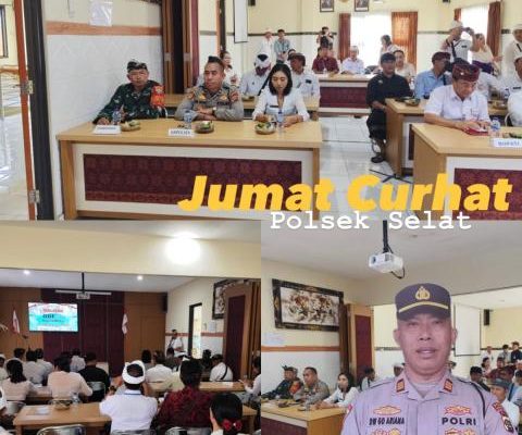 Pada hari Jumat tanggal 03 Januari 2025 sekitar Pukul 09:00 Wita Kapolsek Selat AKP I DEWA GEDE ARIANA, S.H. di dampingi Babinkamtibmas Desa Selat serta Personil Polsek Selat melaksanakan giat sambang sekaligus serap keluhan Warga / Tokoh Masyarakat di Kantor Desa Selat Kecamatan Selat, yang disinkronkan dengan kegiatan Kepolisian dengan tema “Jumat Curhat”.