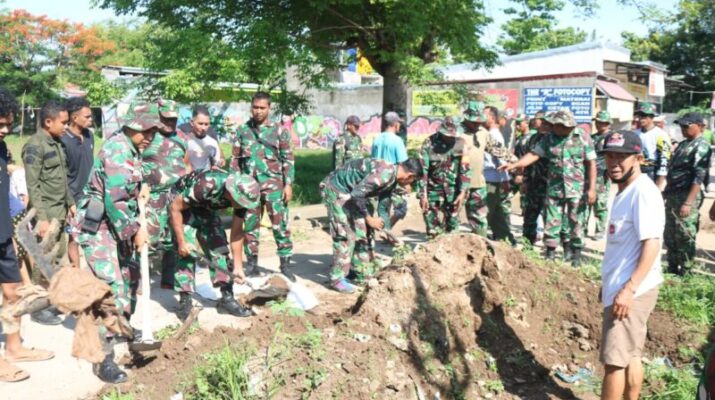 NTT-KUPANG, – Dalam rangka menyambut Hari Juang TNI AD Tahun 2025, Kodim 1604/Kupang melaksanakan kegiatan Karya Bakti yang dipusatkan di lapangan bola Jalan Sumba Tuak Sabu, RT 10/RW 03 Kelurahan Lasiana, Kecamatan Kelapa Lima, Kota Kupang. Kegiatan ini menjadi bentuk nyata kepedulian TNI AD terhadap kebersihan lingkungan serta mempererat kemanunggalan dengan masyarakat. Sejak pagi, seluruh peserta sudah berkumpul untuk mengikuti rangkaian kegiatan yang telah disiapkan. Jumat (12/12/2025).
