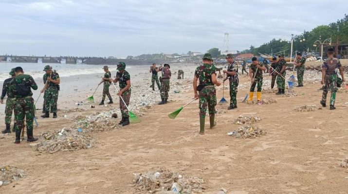 Karya Bakti Terpadu TNI, Pemda dan Masyarakat Bersihkan Sampah Di Pantai Kedonganan