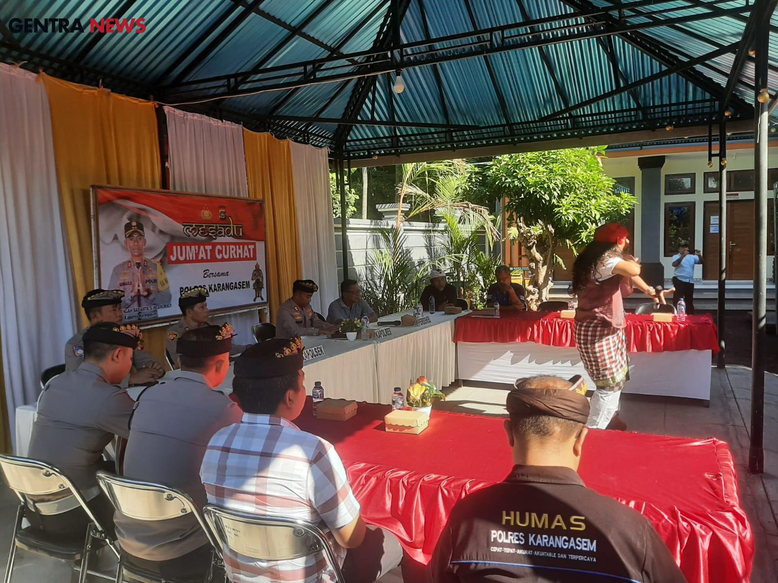 Gentra News Bali – Program Jumat Curhat bertujuan untuk mendengar keluhan masyarakat dalam kesempatan ini Kapolres Karangasem menyampaikan kami mengucapkan terima kasih atas kesempatan yang diberikan dan menyampaikan kegiatan jumat curhat merupakan program kepolisian untuk menyerap aspirasi dari masyarakat serta sarana untuk mendekatkan diri kepada warga masyarakat.Jumat ( 05/07/2024 )