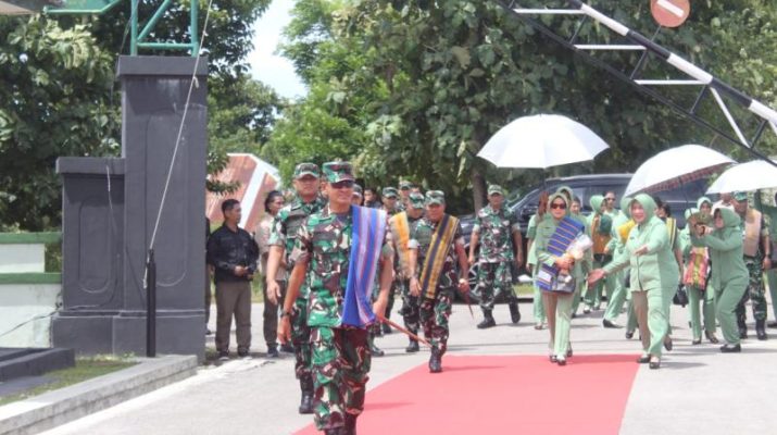 Rombongan Kasdam IX/Udayana tiba di Kolat Proglatsiapops Yonif 743/PSY menerima Paparan Danbrigif 21/Komodo Kolonel inf Andi Adriyanto Wibowo tentang Garisbesar latihan Satgas Pam Kewilayahan Yonif 743/PSY.