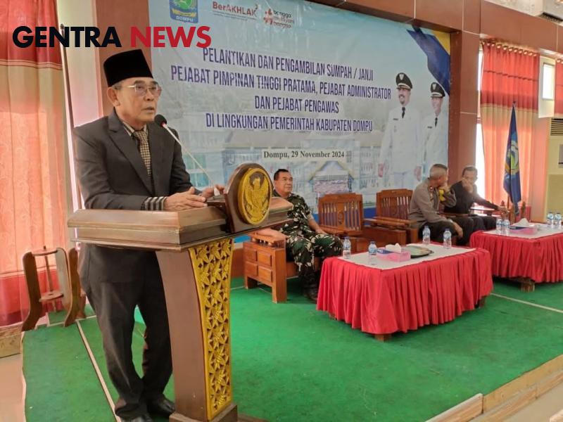 Gentra News NTB – NTB – Dompu, Pelantikan dan Pengambilan Sumpah/Janji Pejabat Tinggi Pratama, Pejabat Administrator dan Pejabat Pengawas di Lingkungan Pemda Dompu. Bertempat di Aula Pendopo Bupati Dompu, Kabupaten Dompu. Jum’at (29/11/2024)