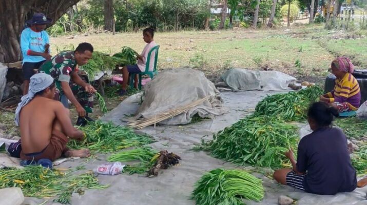 Dalam kegiatan tersebut, Babinsa Kopda Siprianus Juanda mau duduk bersama para petani, membantu memisahkan daun sayur, serta memastikan proses penyiapan hasil panen berjalan lebih cepat dan tertata. Para warga terlihat bekerja dengan penuh semangat, dan kehadiran Babinsa memberikan energi positif tambahan karena merasa didampingi dan diperhatikan oleh aparat kewilayahan.