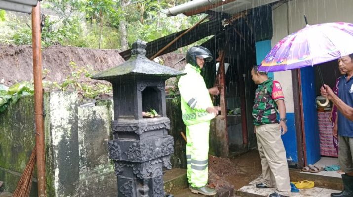 Gentra.co.id Bali – Babinsa Desa Kedis Serda I Wayan Artawan Darminta Putra Bersama Bhabinkamtibmas Desa Kedis a.n Aiptu I Dewa Widiastawa melaksanakan pengecekan warga yang terdampak bencana alam Tanah longsor akibat Hujan Deras yang mengguyur wilayah Desa Kedis,Kec.Busungbiu,Kab.Buleleng.
