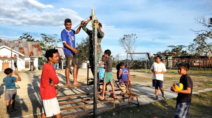 Belu – Pos Nananoe berikan Net dan bola voli kepada masyarakat perbatasan bertempat di kantor Desa Nananoe, Kecamatan Nanaet Duabesi, Kabupaten Belu. Senin (21/07/2025).