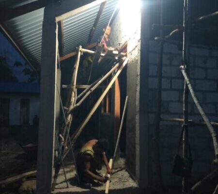 NTT-KUPANG, – Tanpa mengenal lelah dan pantang menyerah, Tim Tukang Kodim 1604/Kupang terus bekerja lembur dibantu warga Oepoli, baik ibu-ibu maupun bapak-bapak. Mereka mengerjakan pemasangan keramik teras depan ruang kelas serta pelesteran bagian dalam ruang guru dalam Program Kolaborasi Pembangunan SMP Negeri Oepoli yang berlokasi di Desa Netemnanu Utara, Kecamatan Amfoang Timur, Kabupaten Kupang, Tahun Anggaran 2025. Sabtu, (13/12/2025)
