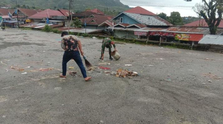 Wujudkan Kemanunggalan TNI – Rakyat, Babinsa Bersama Warga Bersihkan Pasar