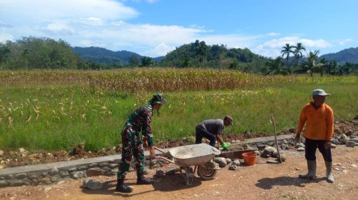 Lancarkan Usaha Tani Dan Sukseskan Swasembada Pangan Babinsa Gotong Royong Perbaiki Jalan Area Pertanian