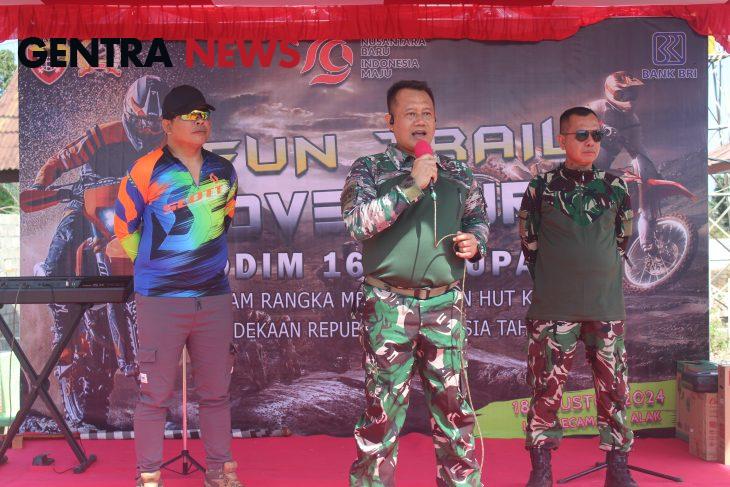 Gentra News NTT – Kupang – Kodim 1604/Kupang menyelenggarakan Fun Trail Adventure dalam rangka memeriahkan HUT Kemerdekaan Negara Republik Indonesia ke-79 di Lapangan Koramil 1604-07/Alak, Kelurahan Penkase Oeleta, Kecamatan Alak, Kota Kupang. Kegiatan ini ditandai dengan pelepasan peserta di garis start oleh Dandim 1604/Kupang Kolonel Inf Wiwit Jalu Wibowo bersama Bapak Simon Petrus Kamlasi (SPK), didampingi oleh Kasdim 1604/Kupang Letkol Czi Sunardi, S.T., M.Ip, Danramil 1604-01/Kota Mayor Inf Hendri Dunant, S.I.P, serta jajaran Danramil lainnya dan Ketua Persit KCK Cabang XV Dim 1604. Minggu (18/08/2024).
