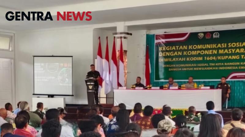 Gentra News NTT – Kupang – Kodim 1604/Kupang menggelar kegiatan Komunikasi Sosial (Komsos) dengan masyarakat di Aula Rumah Jabatan Walikota Kupang. Kegiatan ini dihadiri oleh sekitar 300 orang, termasuk perwakilan dari berbagai komponen masyarakat, serta pejabat Walikota Kupang Linus Lusi, S.Pd., M.Pd., Kapolres Kupang Kota, Kejaksaan Negeri, dan Pengadilan Negeri Kota Kupang. Komsos ini bertujuan untuk mempererat hubungan antara TNI dan masyarakat di wilayah Kodim 1604/Kupang, sekaligus memperkuat rasa persatuan dan kesatuan dalam kehidupan berbangsa dan bernegara. Kamis (14/11/2024).