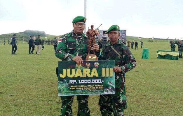 Gentra News NTT-KEFAMENANU, Kamis 19 Desember 2024, Di Bukit Fulan Fehan, terletak di Jl. Loro Lamaknen, Desa Manuaman, Atambua Selatan, Kabupaten Belu, menjadi saksi khidmatnya *Upacara penutupan Peleton Beranting Yudha Wastu Pramuka Jaya (YWPJ) tahun 2024* di titik akhir peringatan *Hari Juang Infanteri TNI AD Tahun 2024*. Pada momentum tersebut, diumumkan hasil perlombaan Bhakti Sosial antar satuan jajaran Korem 161/WS, yang mana Kodim 1618/TTU berhasil meraih Juara 3 (Tiga).