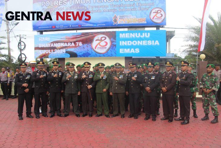 Gentra News NTT – Timor Tengah Selatan Kodim 1621/TTS mengikuti Upacara Hari Bhayangkara ke-78, Tahun 2024 di Lapangan Mapolres TTS Jln.Gajah Mada Kelurahan Karang Sirih Kecamatan Kota So’e,Kabupaten Timor Tengah Selatan Senin (1/07/2024).