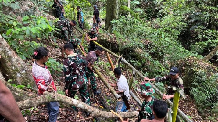 Gentra.co.id NTT – ALOR, Anggota TNI Kodim 1622/Alor lewat karya bakti bersama warga masyarakat di Desa Adang Buom, bergotong royong melaksanakan perbaikan dan perawatan jaringan pipanisasi air bersih, Sabtu (21/12/2024).