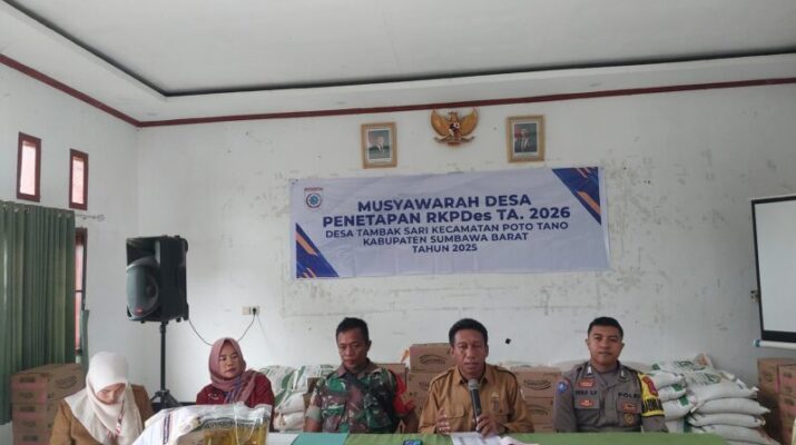 Sumbawa Barat, NTB – Babinsa Desa Tambak Sari, Kecamatan Poto Tano, Kabupaten Sumbawa Barat, Koptu Arifin melaksanakan pendampingan penyaluran Bantuan Pangan (Banpang) Tahap I Tahun 2025 alokasi bulan Oktober–November. Kegiatan berlangsung di Kantor Desa Tambak Sari, Kecamatan Poto Tano, Kabupaten Sumbawa Barat.
