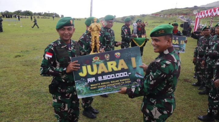 Penyerahan hadiah berupa piala dan uang diserahkan usai upacara peringatan Hari Juang Infanteri tahun 2024 yang berlangsung di padang Fulan Fehan, Desa Dirun, Kecamatan Lamkanen, Kabupaten Belu, Kamis (19/20/2024).