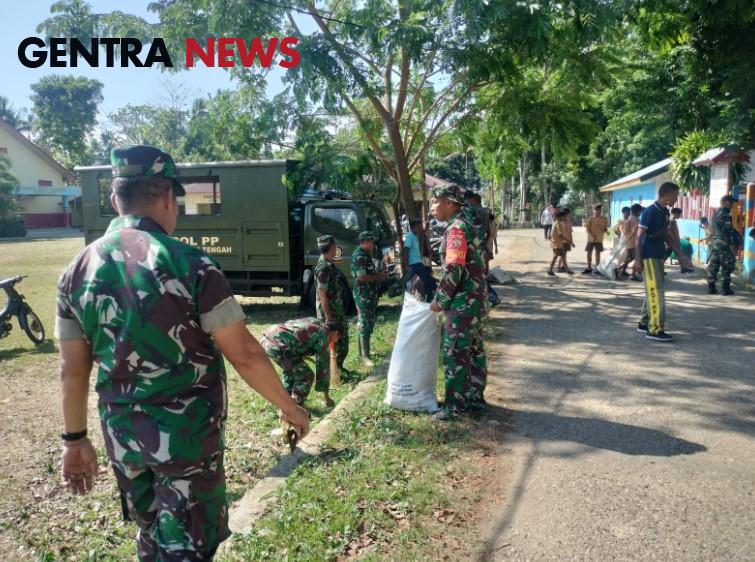 Gentra News NTT – SUMBA TENGAH, Dalam rangka memperingati HUT TNI ke-79, Koramil 03/Katikutana Kodim 1613/Sumba Barat berkolaborasi dengan Polri, Pol PP dan instansi lainnya bersama masyarakat dan anak sekolah melaksanakan kegiatan kerja bakti di Sekolah Taman Seminari Stella Matutina Paroki St. Klemens Katikuloku Kabupaten Sumba Tengah, Jumat (11/10/2024).