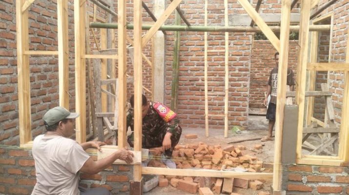Dalam kesempatan tersebut Praka Ahmad Fawaid berkesempatan untuk ikut membantu pembuatan rumah salah satu warga desa binaanya.