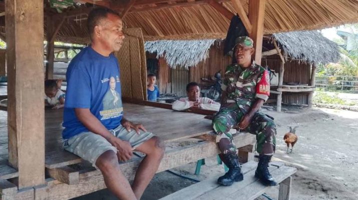 Gentra News NTT – KODIM 1605/BELU, Babinsa Desa Biris Sertu Armindo Daok Koramil 1605-09/Biudukfoho melaksanakan komsos dengan Bapak Weliam Aser Seran selaku Ketua Kelompok Tani di Dusun Haslaran, Desa Biris, Kecamatan Wewiku, Kabupaten Malaka, Senin (6/1/2025).
