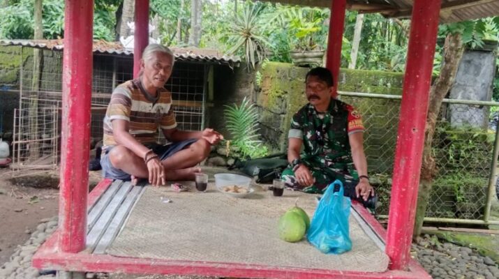 Jembrana, Bali – Babinsa Desa Mendoyo Dauh Tukad, Sertu Suwardi, melaksanakan kegiatan Komunikasi Sosial (Komsos) dengan Tokoh Adat yang juga menjabat sebagai Ketua Badan Permusyawaratan Desa (BPD) Mendoyo Dauh Tukad, Ida Bagus Putu Suartama (54 tahun). Kegiatan ini berlangsung di wilayah Banjar Tengah, Desa Mendoyo Dauh Tukad, Kecamatan Mendoyo, Kabupaten Jembrana, pada hari Sabtu, 30 November 2025.