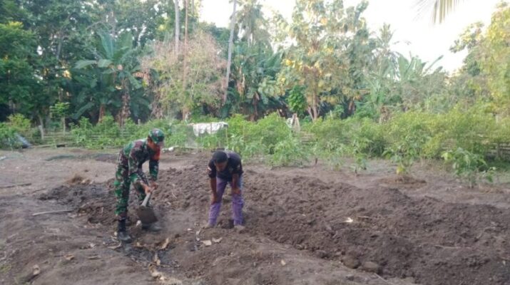 Alor — Pantar Barat —, Dalam rangka menjaga kedekatan dengan masyarakat, Babinsa Desa Piringsina, Kopda Ahmad Subahan, melaksanakan kegiatan pemantauan wilayah sekaligus membantu warga mencangkul lahan kering untuk pembuatan bedengan hortikultura. Kegiatan ini berlangsung pada Kamis, 18 September 2025, pukul 10.30 Wita, bertempat di RT 001/RW 002, Dusun 1, Desa Piringsina, Kecamatan Pantar Barat, Kabupaten Alor.